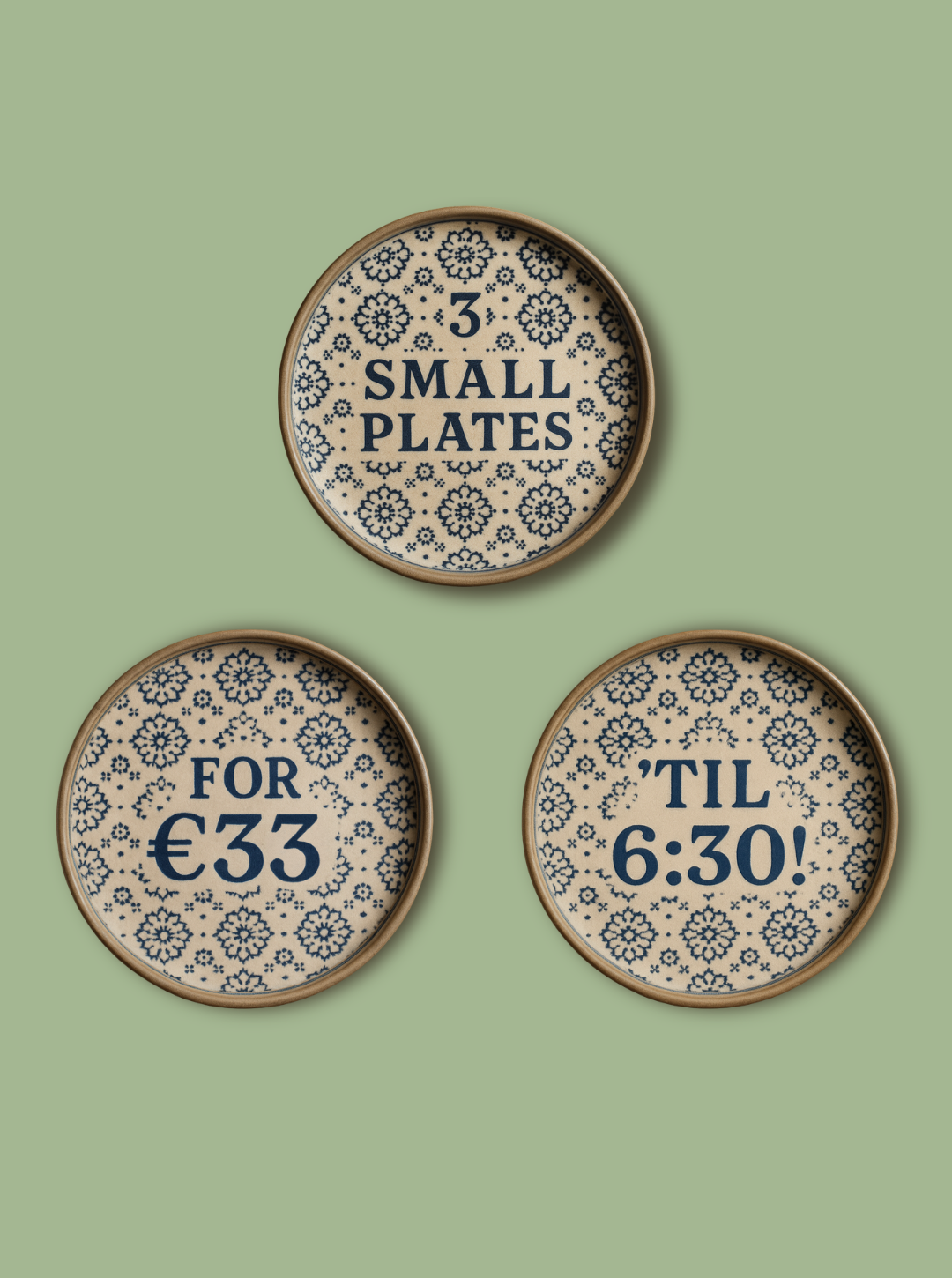 Our small plates selection is designed to bring you on a culinary journey across multiple continents & cultures, focused on quality ingredients and the joy of food as a shared experience. The best way to find out is to get here any day before 6:30pm and all day Thursday to get any 3 dishes from our small plates selection for only €33!